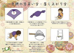 <赤ちゃんに重さ一升のお餅を背負わせ、1歳の誕生日を祝うのが一升餅です。